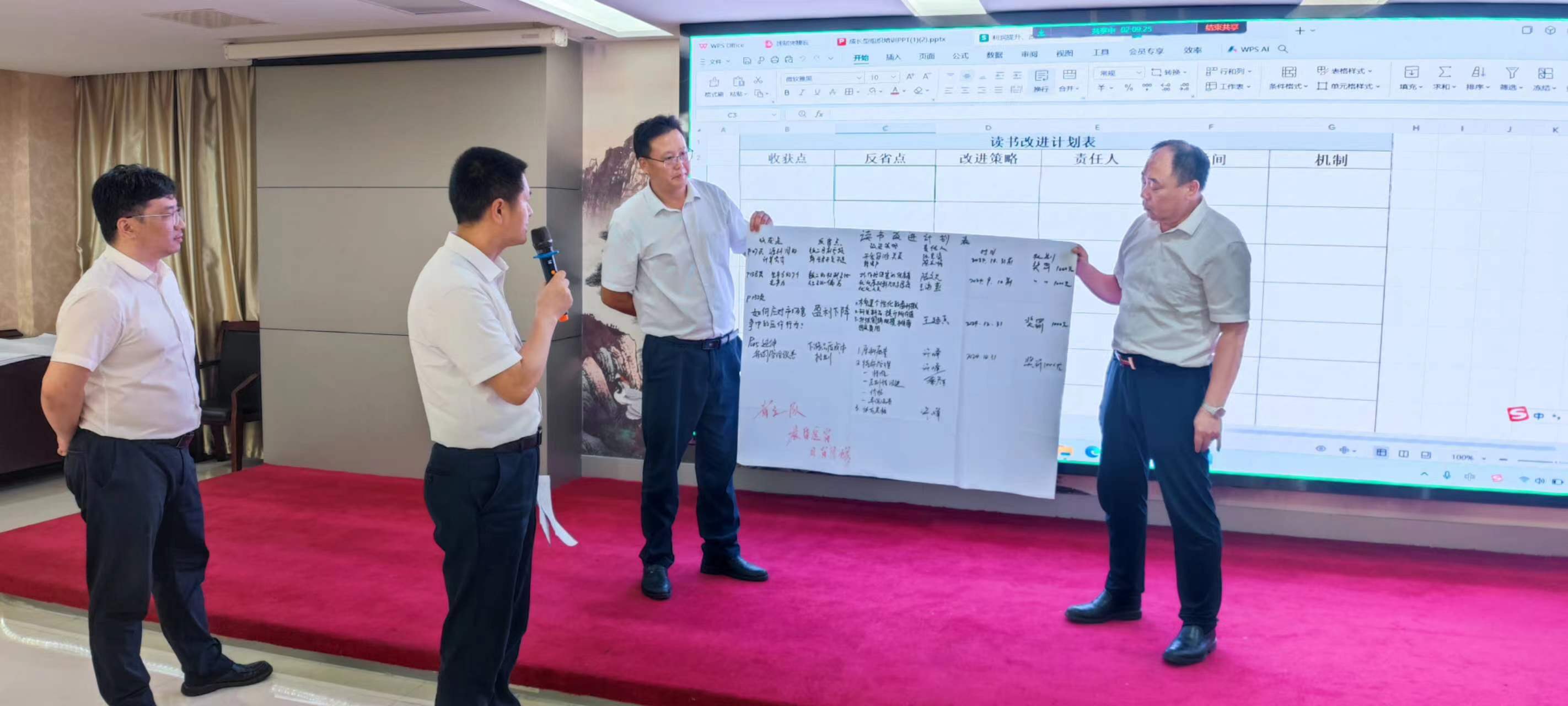 在交流環(huán)節(jié),每個(gè)小組組長分別上臺(tái)發(fā)表感言,所思、所想、所悟,并聯(lián)系實(shí)際工作中的不足與欠缺之處,以及有待解決或尚未發(fā)現(xiàn)的問題,大家暢所欲言,無不盡抒。每個(gè)小組根據(jù)收獲點(diǎn)、反省點(diǎn)、改進(jìn)策略、責(zé)任人、時(shí)間、機(jī)制相關(guān)內(nèi)容完成了本次學(xué)習(xí)的《讀書改進(jìn)計(jì)劃表》,并上臺(tái)宣讀、講解、公示。