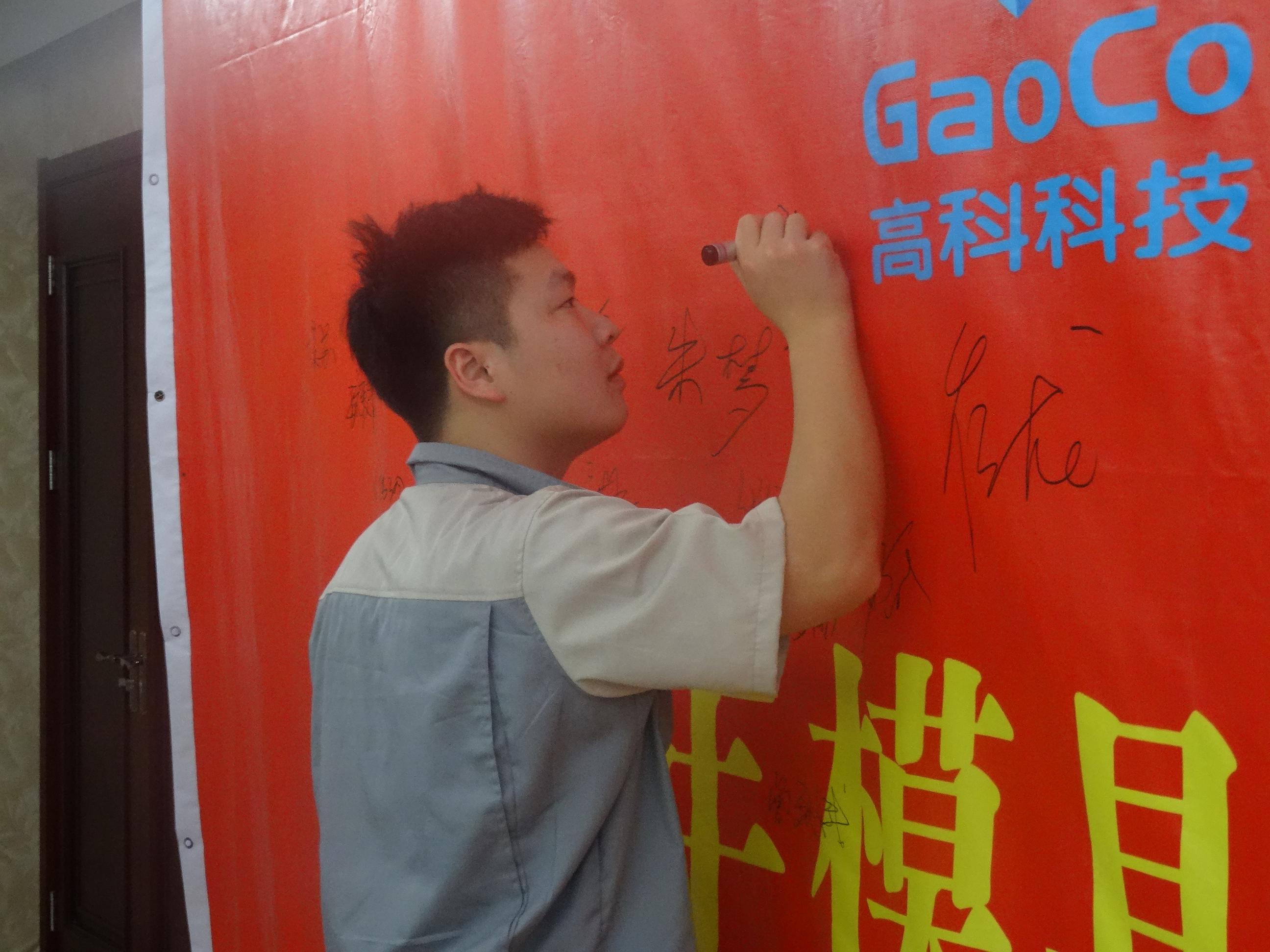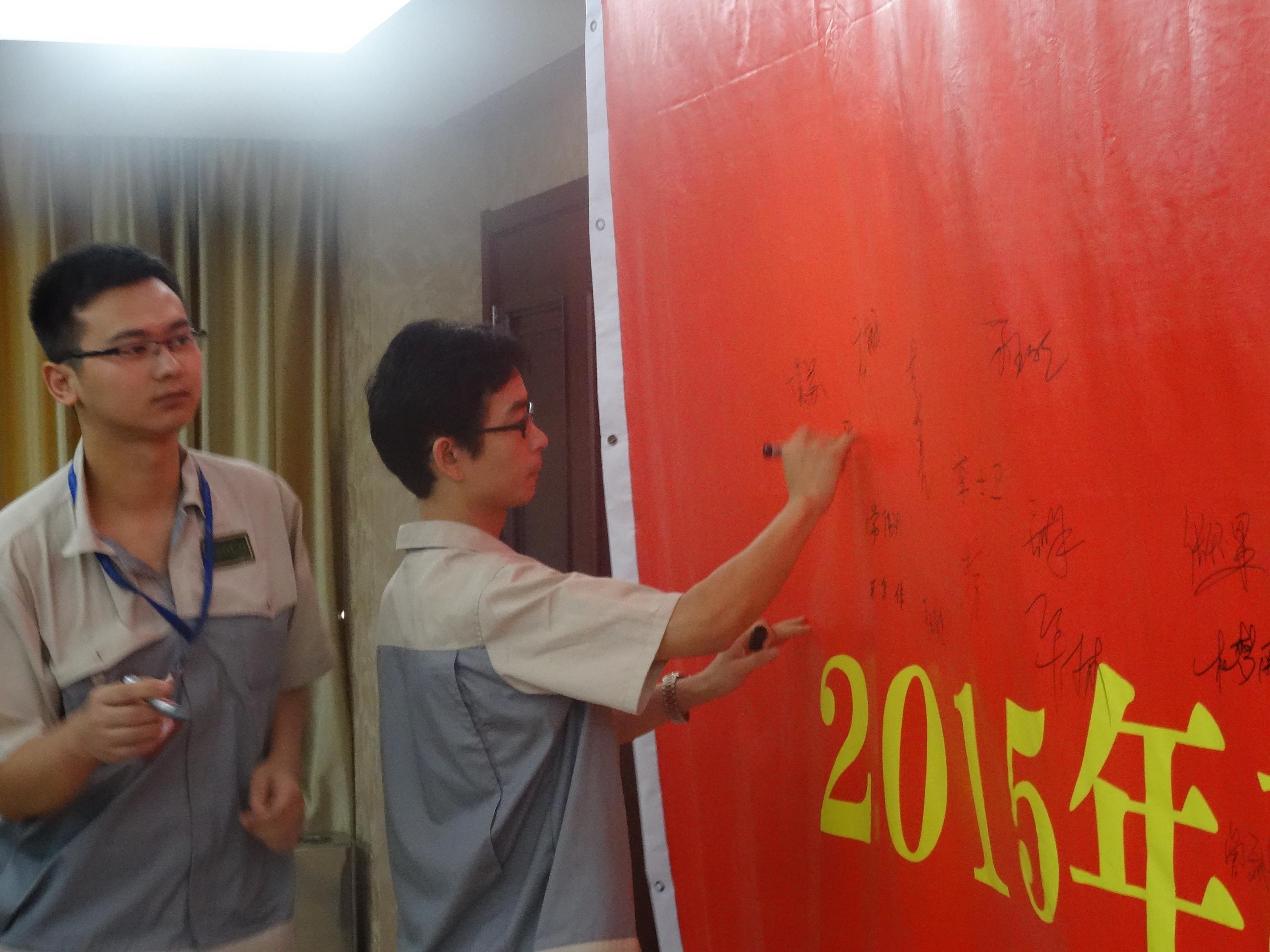 隨后模具事業(yè)部丁部長帶領(lǐng)全體人員進(jìn)行安全生產(chǎn)月宣誓,并在誓師大會橫幅上簽名。